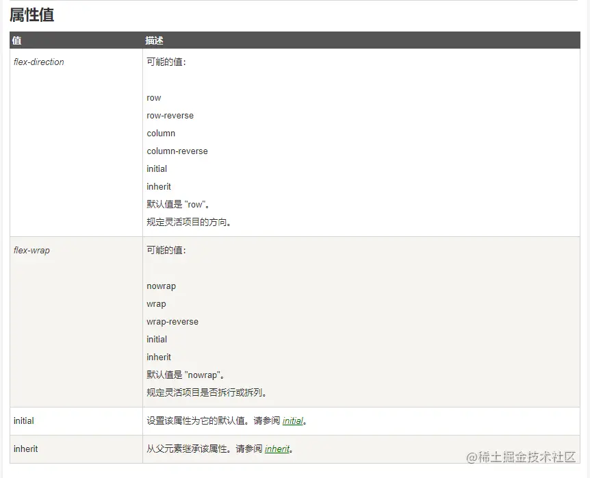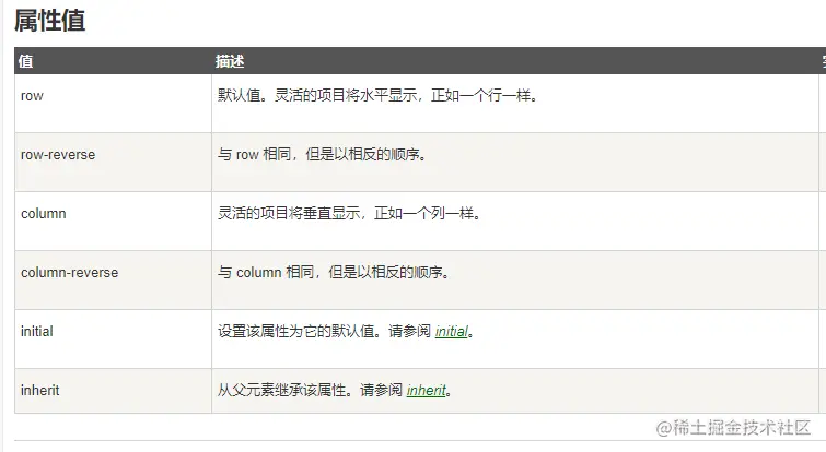 - flex-direction属性决定主轴的方向(即项目的排列方向)默认值:row(属性值来源于菜鸟教程)