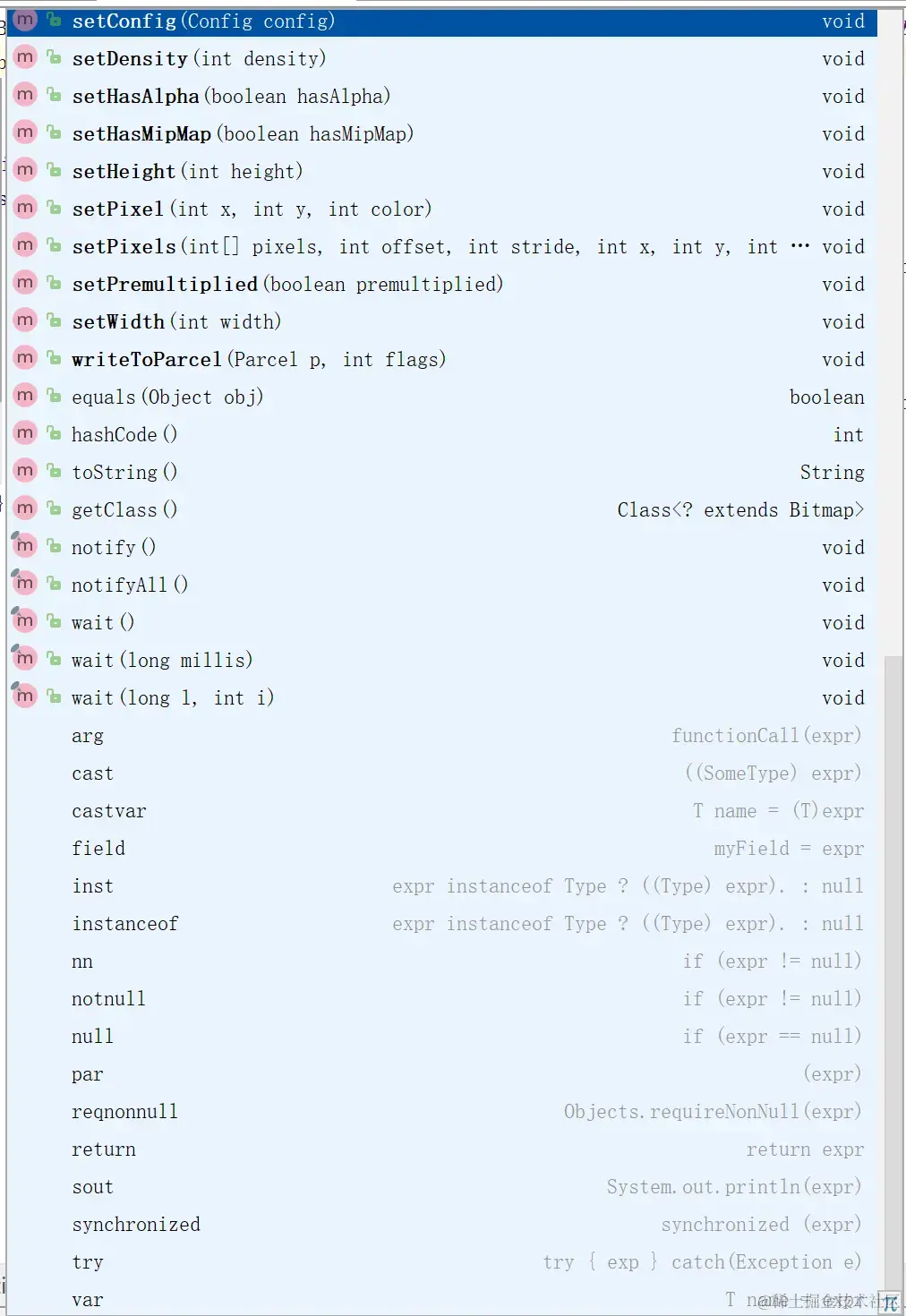 BitmapFactory,而不是直接用Bitmap呢?Bitmap有引起内存泄漏的风险; 所以使用系统提供的工厂类BitmapFactory中的静态方法来创建一个Bitmap;Bitmap本身的构造方法是private;不允许直接new Bitmap();