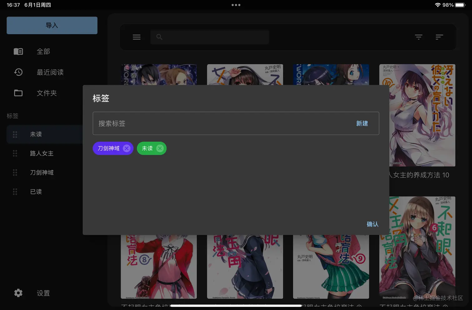 可以通过长按图书的方式呼出菜单,通过菜单中的选项编辑标签: