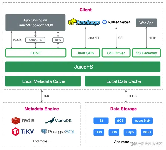 JuiceFS 是一款面向云原生设计的高性能分布式文件系统,在 Apache 2.0 开源协议下发布。提供完备的 POSIX 兼容性,可将几乎所有对象存储接入本地作为海量本地磁盘使用,亦可同时在跨平台、跨地区的不同主机上挂载读写。