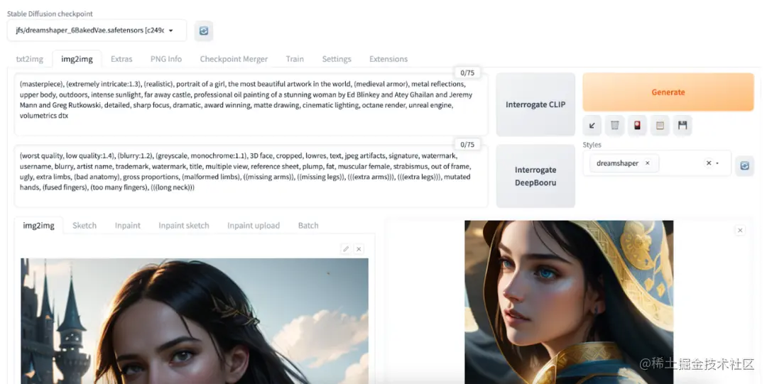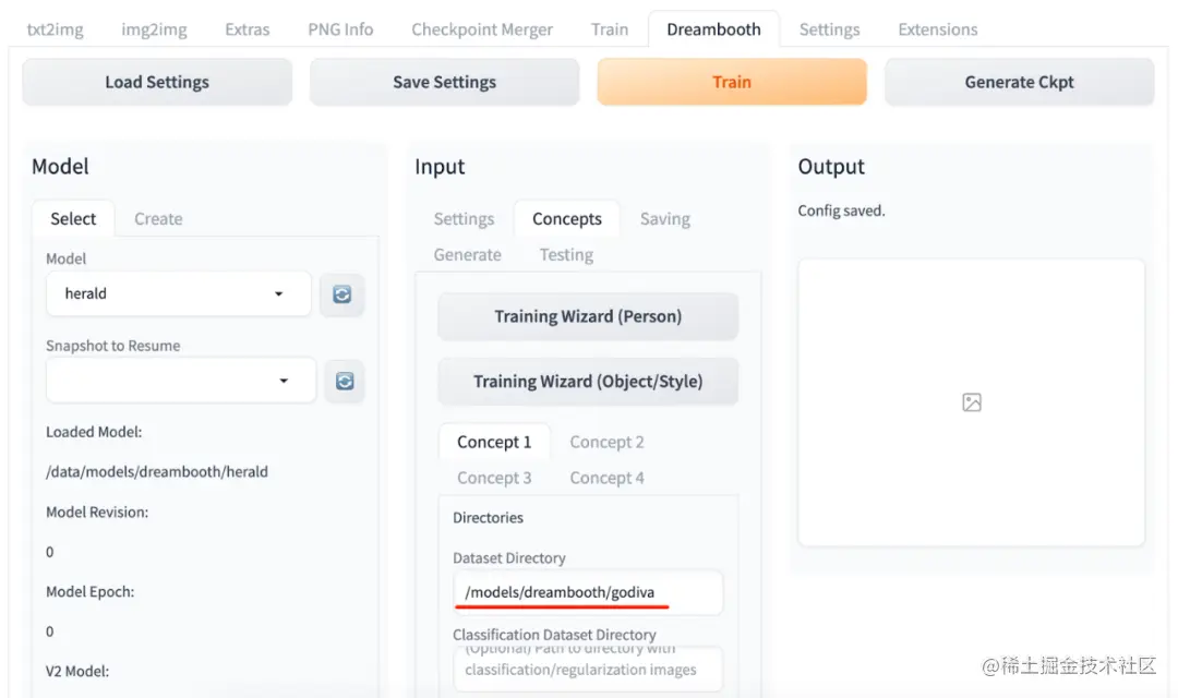 同样地,使用 DreamBooth 训练的模型位于 models/dreambooth 目录,你可以用前面介绍的方法在 JuiceFS 文件系统中提前创建 DreamBooth 目录并挂载到 Stable Diffusion 中。