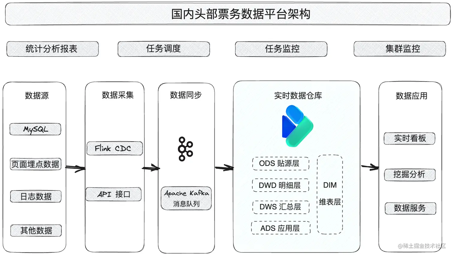 基于此,国内某头部票务平台为了更好地处理和分析各剧院的票务销售、分销渠道、用户画像等数据,决定搭建实时数据仓库,并建设高效快捷的数据分析系统,将系统应用于常规业务报表、敏感数据监控以及票务推荐等应用。希望通过数据报表对剧院票务进行精细化地分析与处理,最终赋能营销策略、掌握市场需求,并达到票务销量增长。本文将详细介绍该票务公司引入 Apache Doris 实时数仓的搭建过程与报表开发场景下的应用实践,并分享在数据导入、数据开发、数据查询与系统运维等方面的收益成果。