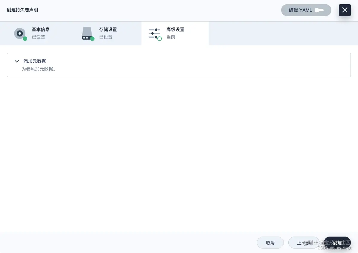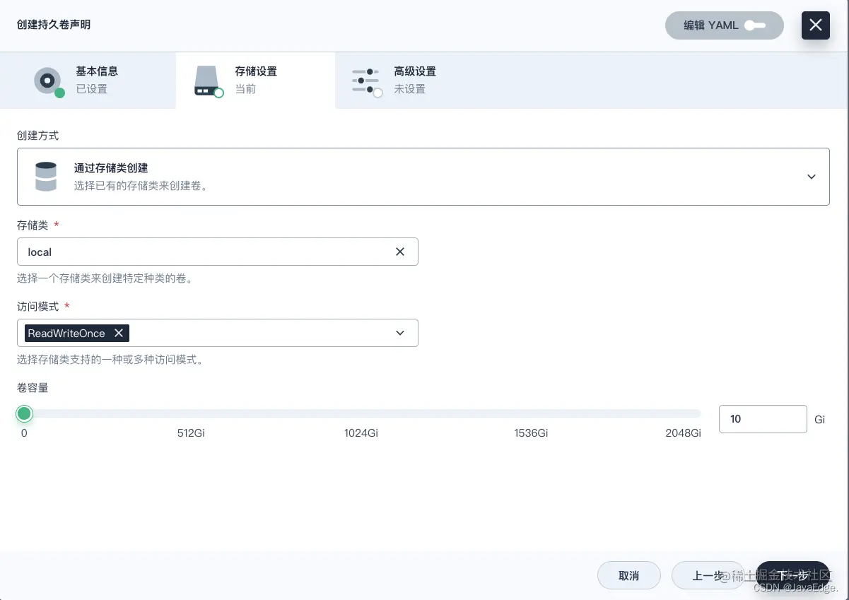 - 输入持久卷声明的基本信息(如命名为