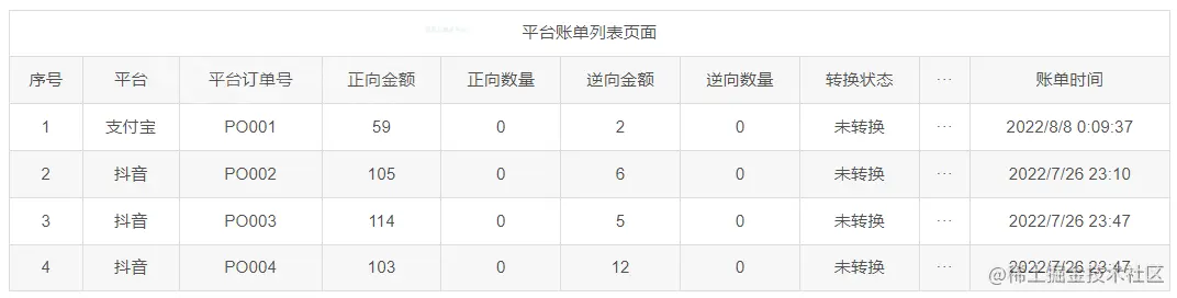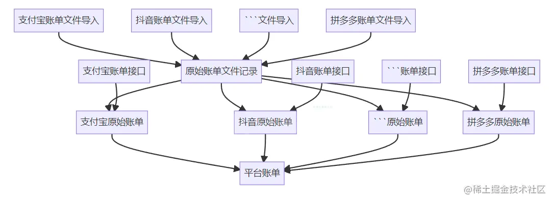 - 由于不同平台原始账单数据格式不同,需要将不一致的数据规整成一张统一的平台账单。