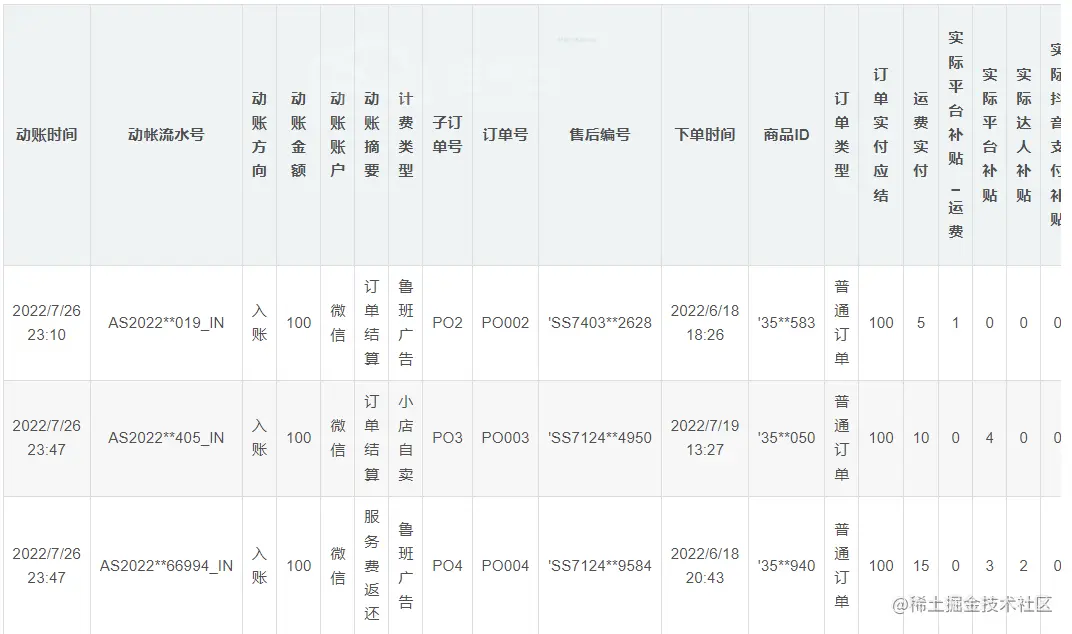 - 对账结果单主表封账金额=平台金额,对账结果单sku明细表中的封账金额可以按比例分摊封账金额。