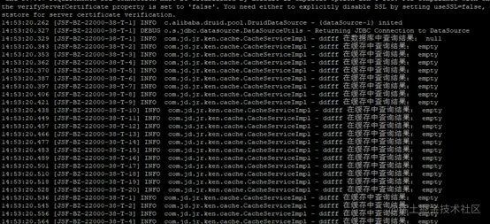 查看日志结果:可以看出大量请求到达数据库,并且同一个pin或id执行了多次数据库查询