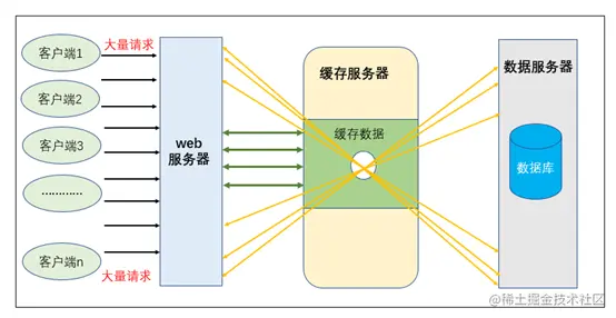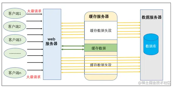 测试方法:对多个使用到缓存的接口进行并发调用,设置这些缓存时间已过期(即删除缓存),调用时这些接口查询缓存时无数据,去查询数据库,这些请求都指向数据库,数据库压力增大,耗时增加。