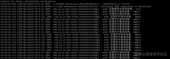 从日志可以看出:可以看到每个都只查询了一次数据库并设置缓存,之后的请求都命中了缓存