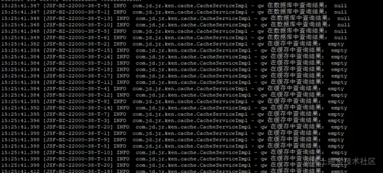 查看日志结果: 从日志可以看出:执行并发请求后, 所有请求每次都走向了数据库。