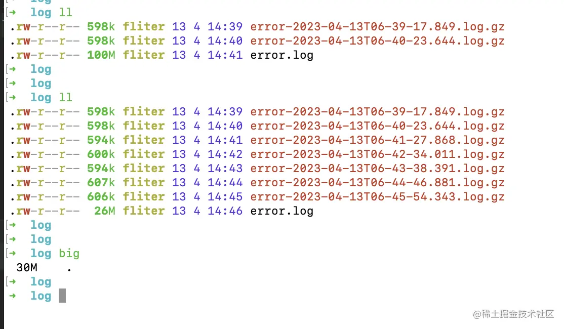 可见最早拆分出的那个error-2023-04-13T05-40-48.715.log文件不见了~