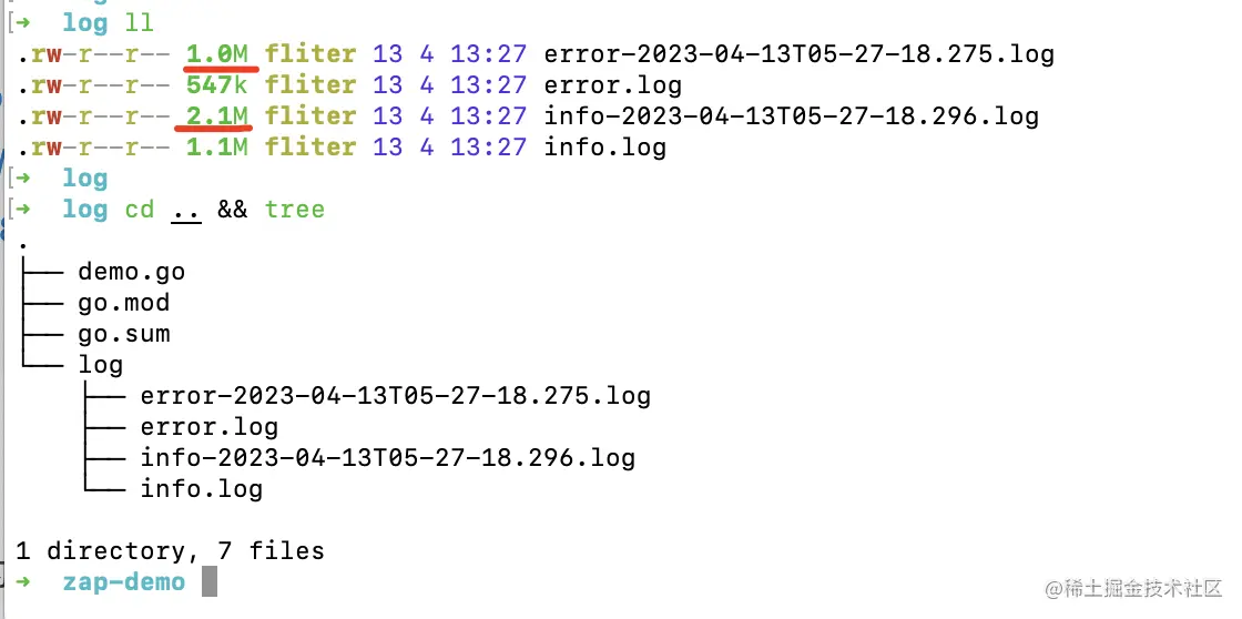 完整demo项目代码 以zap为例,展示如何切割日志文件。 使用Go生态两个使用最高的切分库