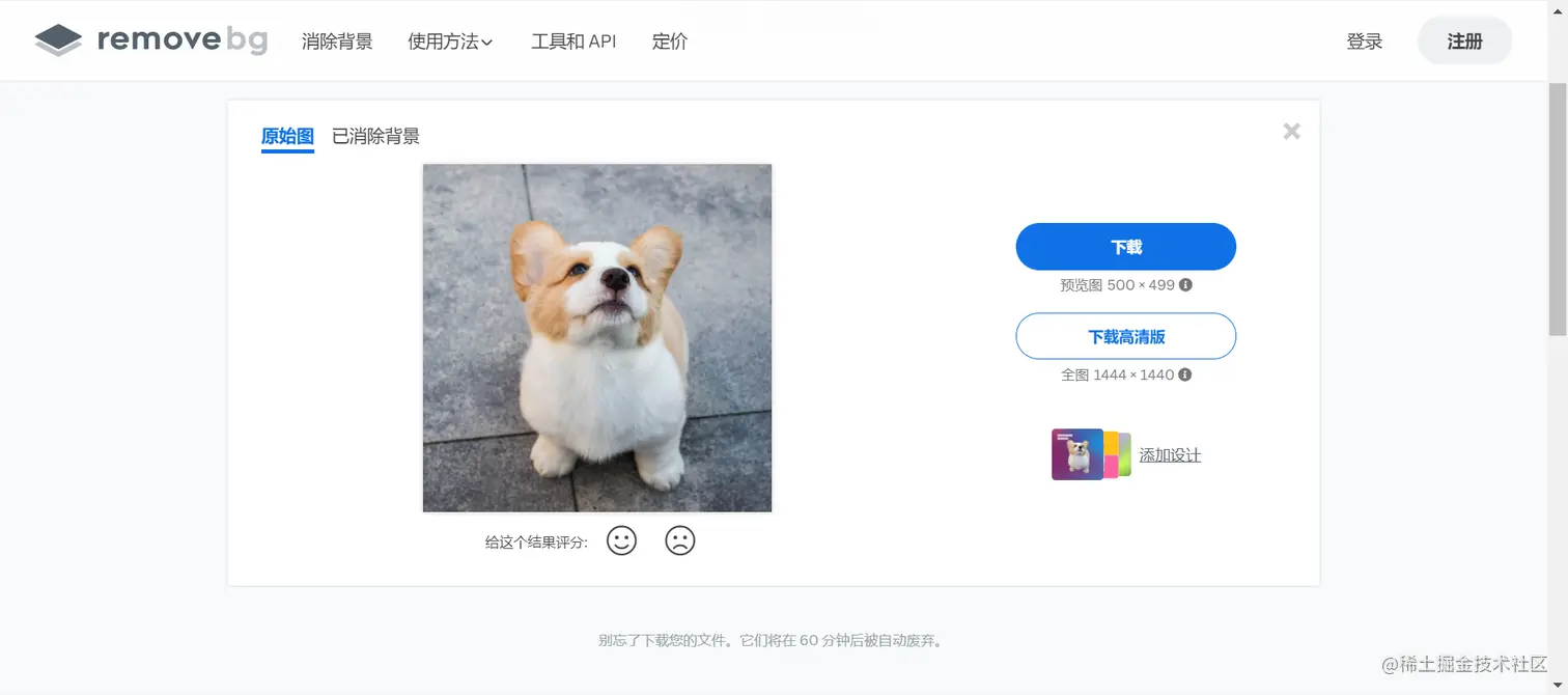 已处理的图片需要尽快下载,否则60分钟后会被自动废弃。