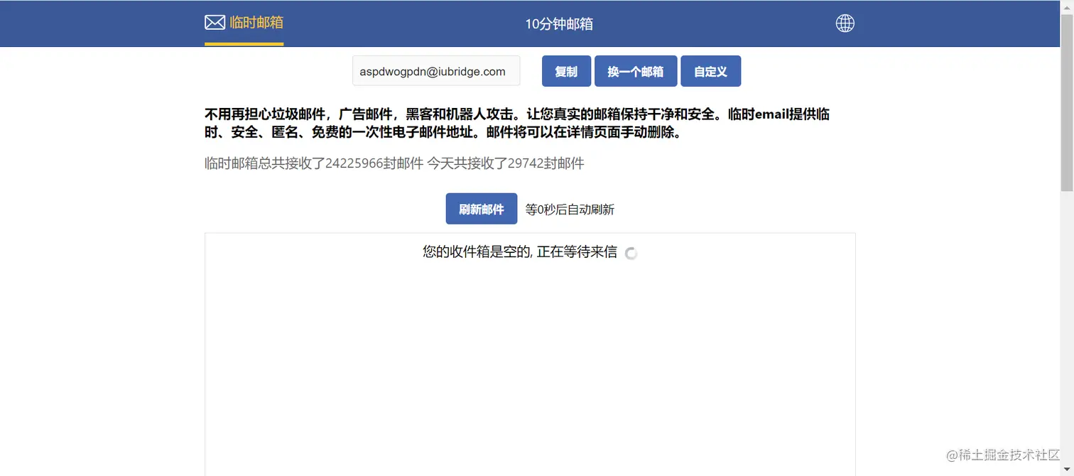 为防止滥用,每个用户都有一定数量的邮箱名限制(每小时10个邮箱每天20个邮箱),超过限制当前时间段将无法接收到邮件,过一段时间后自动解除限制,所以不要频繁切换邮箱。
