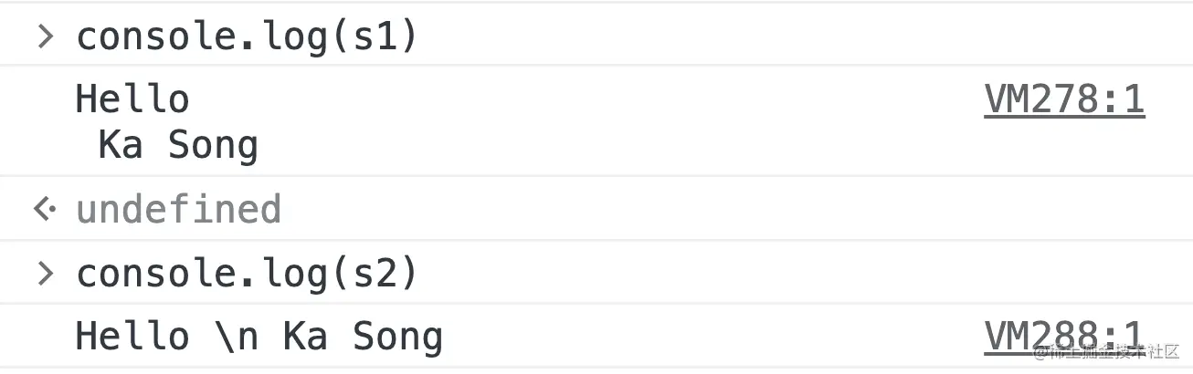 之所以s1有换行符,而s2没有,是因为默认情况,模版字符串会处理转义字符(比如这里的\n),而String.raw不会处理。