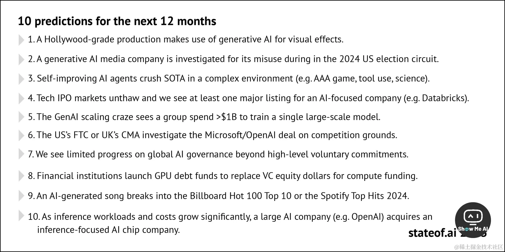 最后一起看看关于未来12个月的10条预测!让我们拭目以待,新的一年AI还会带给我们哪些惊喜~