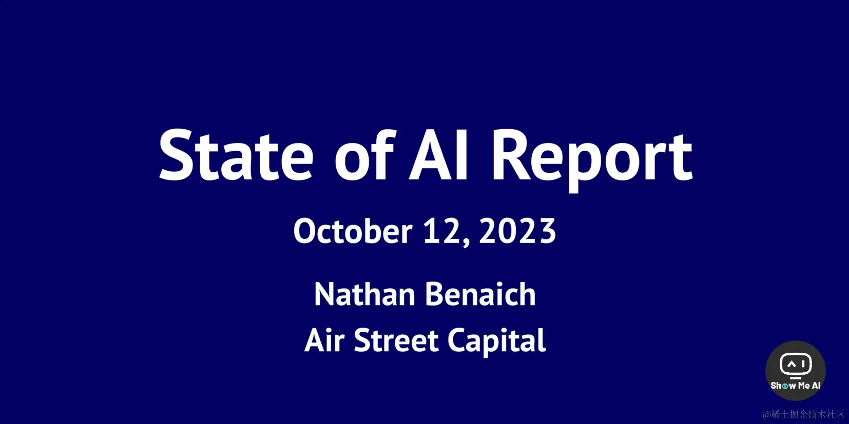 2023年的「State of Al Report」如期到来!这份报告已经持续发布了六年,每年10月发布报告,总结过去12个月的AI进展,并预测下一年的发展方向。报告由一群专业的AI投资人撰写,提到的技术和商业发展预判值得重视~