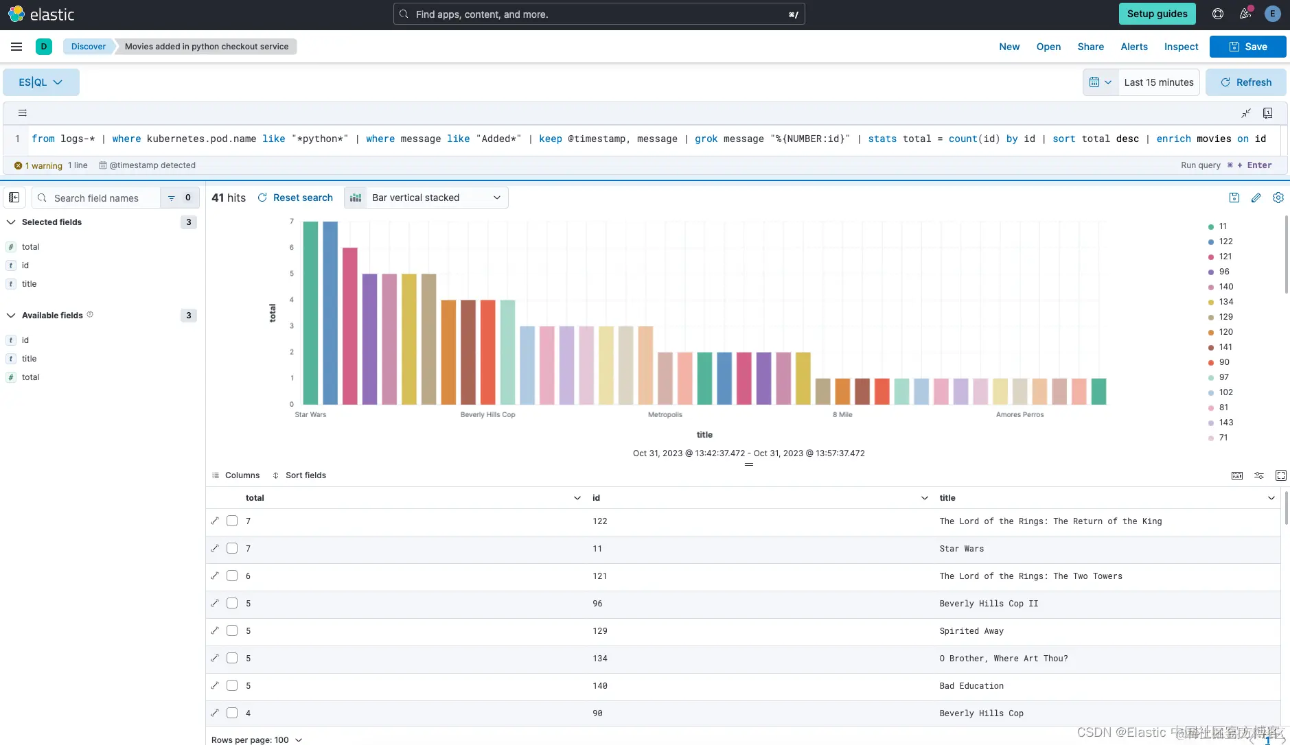 ES|QL 示例输出: