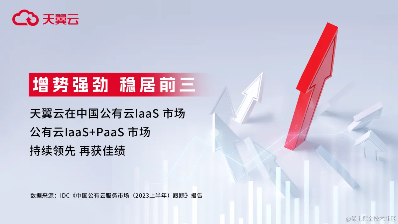 11月2日,国际数据公司(IDC)最新发布的《中国公有云服务市场(2023上半年)跟踪》报告显示,在中国公有云IaaS市场,中国电信天翼云份额占比再度大幅攀升,稳居业内前三;同时,在公有云IaaS+PaaS市场,天翼云同样增势强劲,以领先优势,位列第三。从中国企业和
