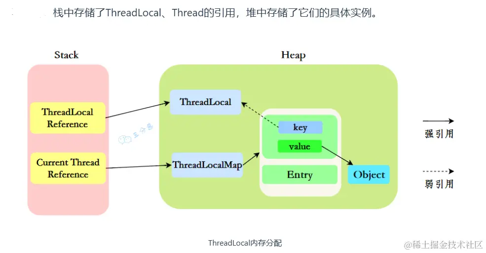存在什么问题:如果不及时清理,容易出现内存泄漏,因为key是用的弱引用,而value是强引用,很大可能key被回收了,value还存在。解决方案也比较简单,调用remove方法就可以,会删除key被回收了value的值。