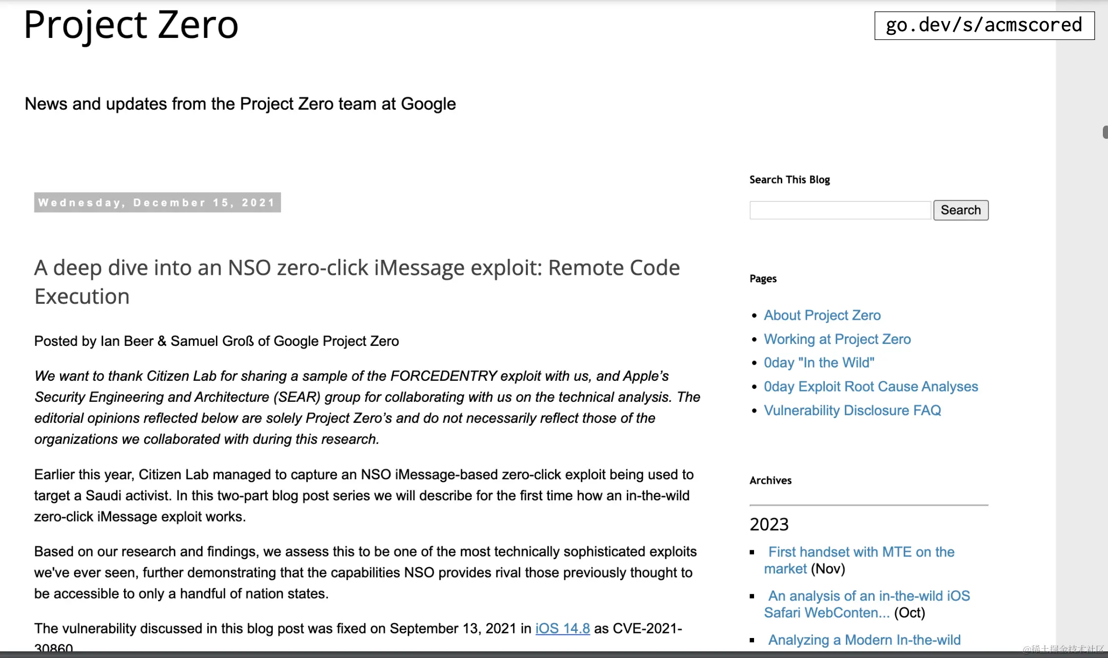 谷歌安全研究员直呼复杂 | iMessage 零点击漏洞利用细节公开