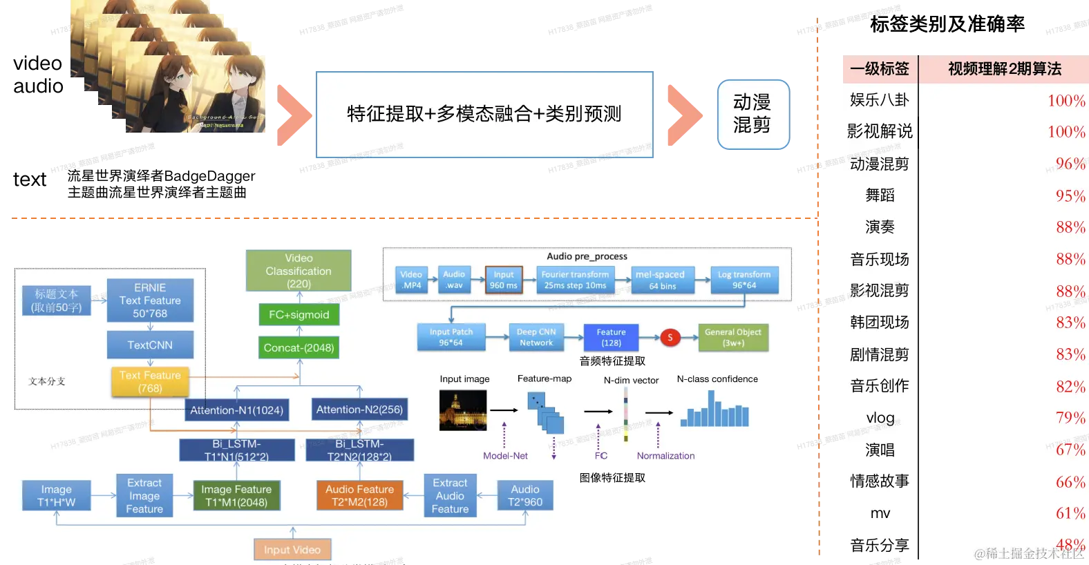 视频分类,即对输入的长视频或短视频都需要进行分类。视频分类在一定意义具有很多的不确定性,因为有很多视频在分类过程中,不一定是视觉可分。单从视频本身可能无法准确定义出类型,因此云音乐使用跨模态方法进行视频分类,在整个分类过程中把音频信息和文本信息联合去做分类。