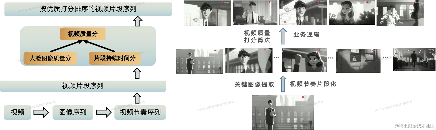 在视频作品推广、直播间推荐等应用中,需要集中高效地传递信息,以迅速抓住用户的眼球,留住用户并促成点击。否则由于用户浏览速度快,如果不能在较短的时间内播放最可能吸引用户的精彩内容,那么就无法完成推广。动态封面相比静态封面,情节更丰富,让观众立即了解视频主题,具有更强的视觉冲击力和吸引力。而动态封面的生成需要使用提取视频中的最精彩的片段即为高光片段。我们以关键帧为基础,将视频切分成不同的视频片段序列,综合采用片段中的视频质量打分方法以及业务逻辑需求,提取最符合逻辑需求的高光片段。