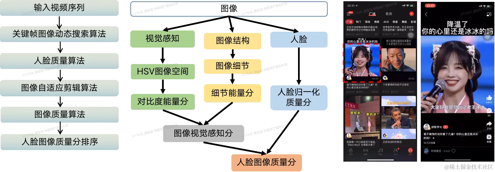在视频作品中,封面往往起着至关重要的作用,它决定了用户对整个多媒体内容的第一印象。一个好的封面可以吸引用户的眼球,提高视频的点击率,增加视频的曝光率,可以帮助视频更好地推广。智能封面技术主要是利用AI技术对视频帧进行智能分析,并选取最优的帧作为封面。我们针对输入的视频序列,首先采用关键帧图像动态搜索算法搜索到整个视频中最优关键帧排序,在候选关键帧中再根据图像中的人脸信息综合根据五官、角度等综合计算图像中人脸质量分数排序,同时根据不同的展示位置尺寸比例要求,裁剪出最合适的区域,综合评定出最合适的图像帧作为封面。