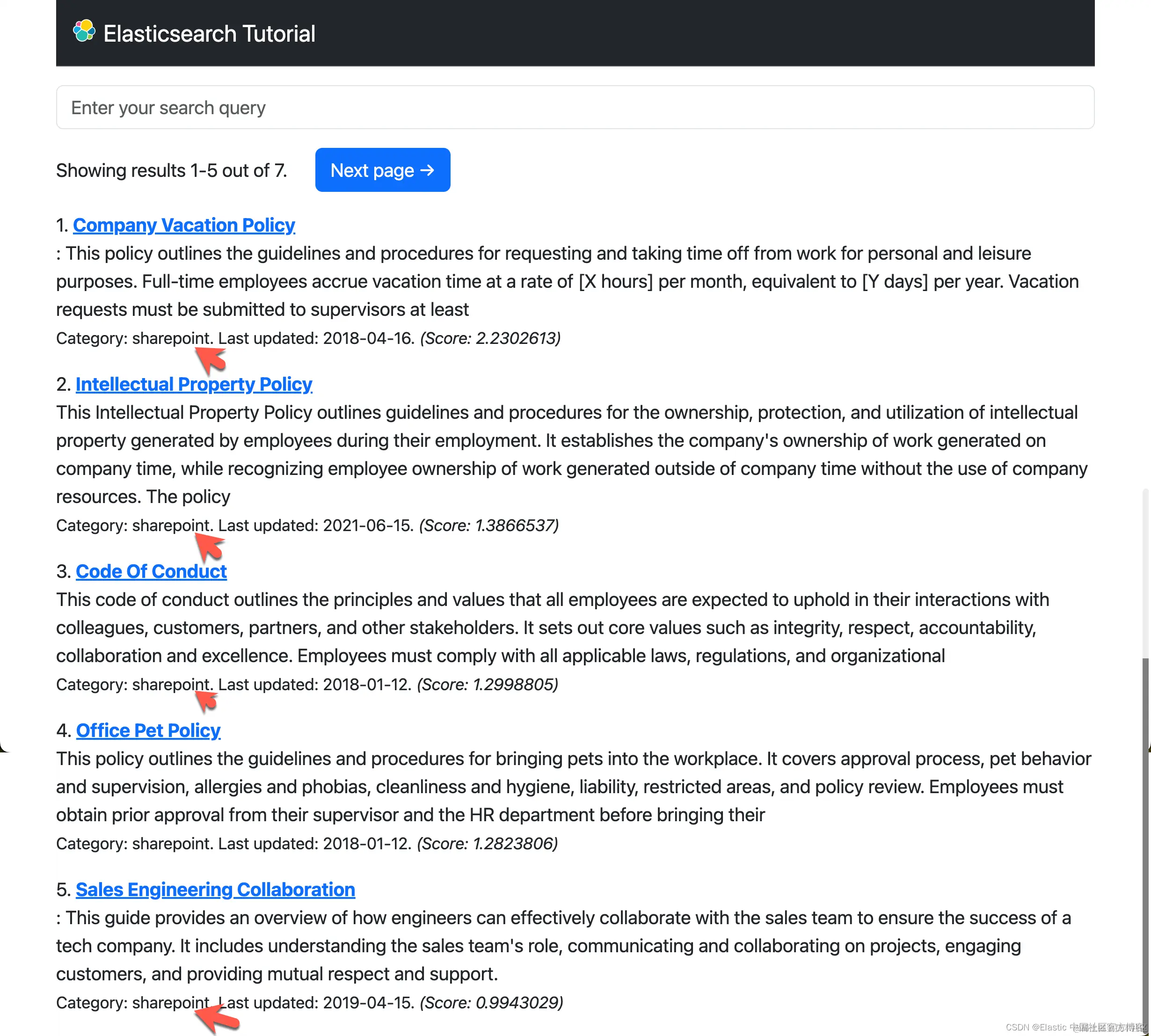 从上面的结果中,我们可以看出来所有的文档的 Category 都是 sharepoint。