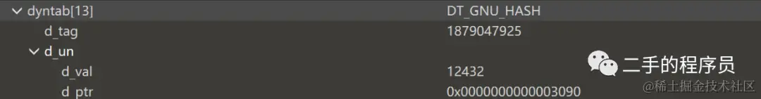 - symndx。4个字节,symndx是动态符号表中可通过哈希表访问的第一个符号的索引。symndx决定了第4部分即Hash Values的条目数量,1个Hash Values占4个字节,(dynsymcount – symndx)*4的结果就是Hash Values的实际大小,dynsymcount如果有人不清楚是什么,这里我明确告诉你们,dynsymcount表示的是动态符号表的条目数量。