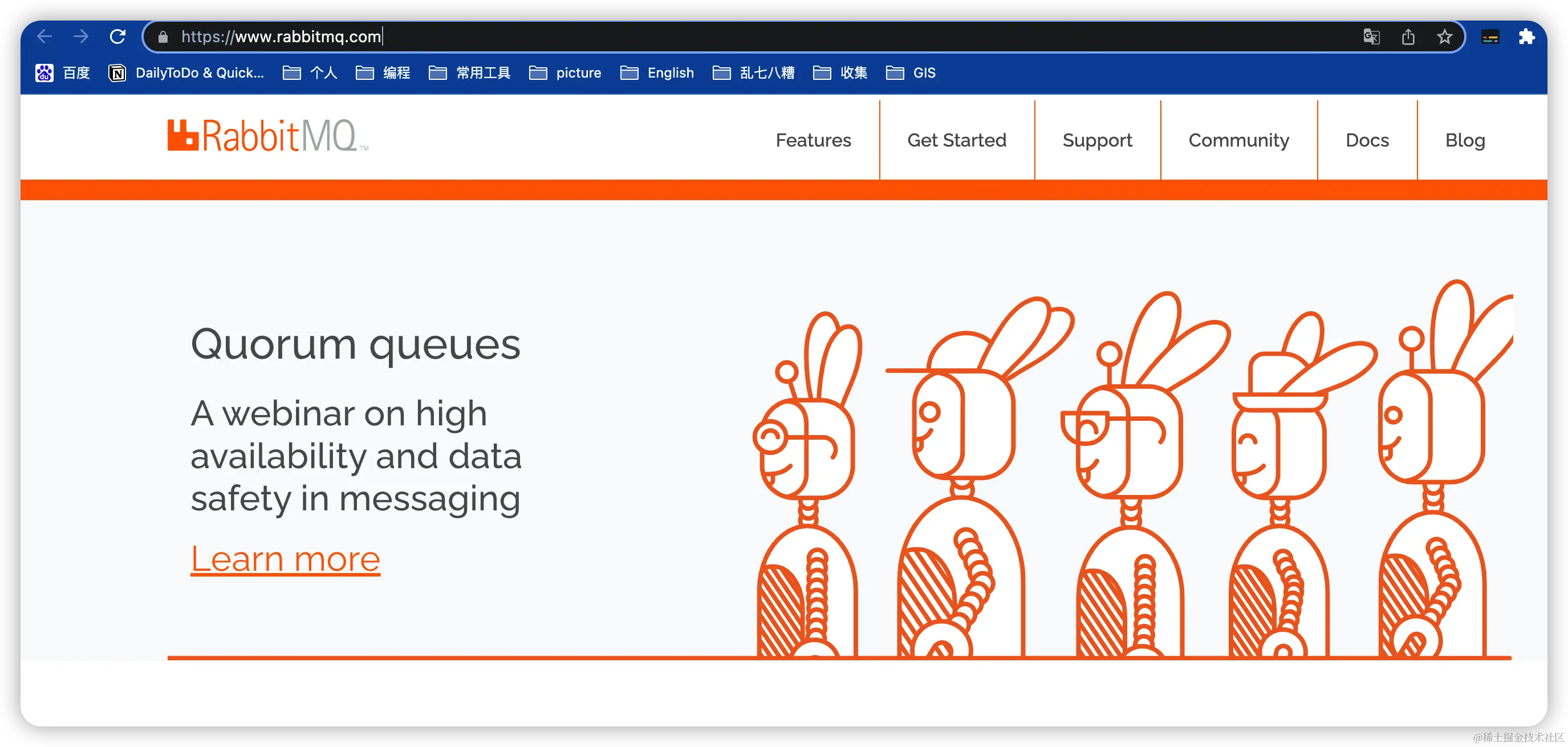 关于RabbitMQ的更多功能特性,可以在官网( www.rabbitmq.com/ )