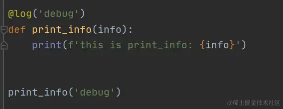 在被修饰函数上面,使用'@装饰器'修饰被修饰函数,然后直接使用print_info即可: