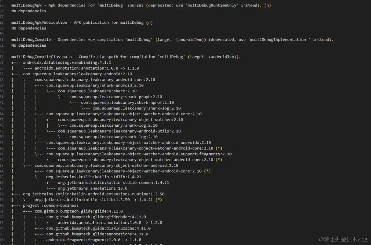 当需要排查包依赖冲突、统一依赖版本的时候,我们第一步要做的就是了解目前整个项目的依赖情况,Android dependencies文件就是所有模块在所有任务下的依赖情况综合(就是一个文件),比如App有编译时候的依赖图,也有执行时候的依赖图,本文就如何生成以及查看这个文件进行讲解。