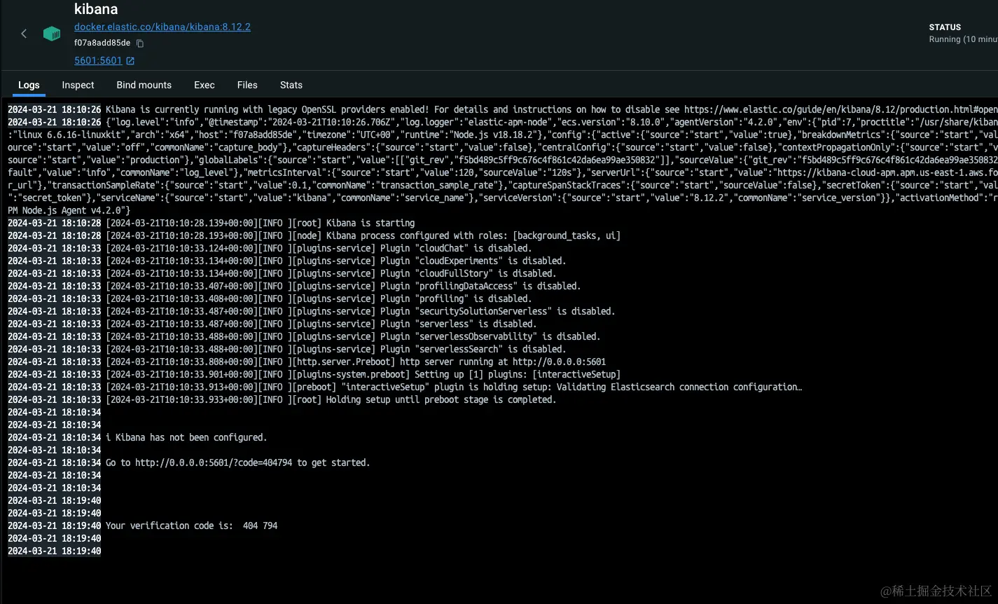 如果想要挂载所有配置文件,首先要先创建一个预备容器然后将配置文件拷贝到本地命令如下,然后停止并删除容器,然后数据卷加上配置文件夹,运行容器。下面的kibana如同。