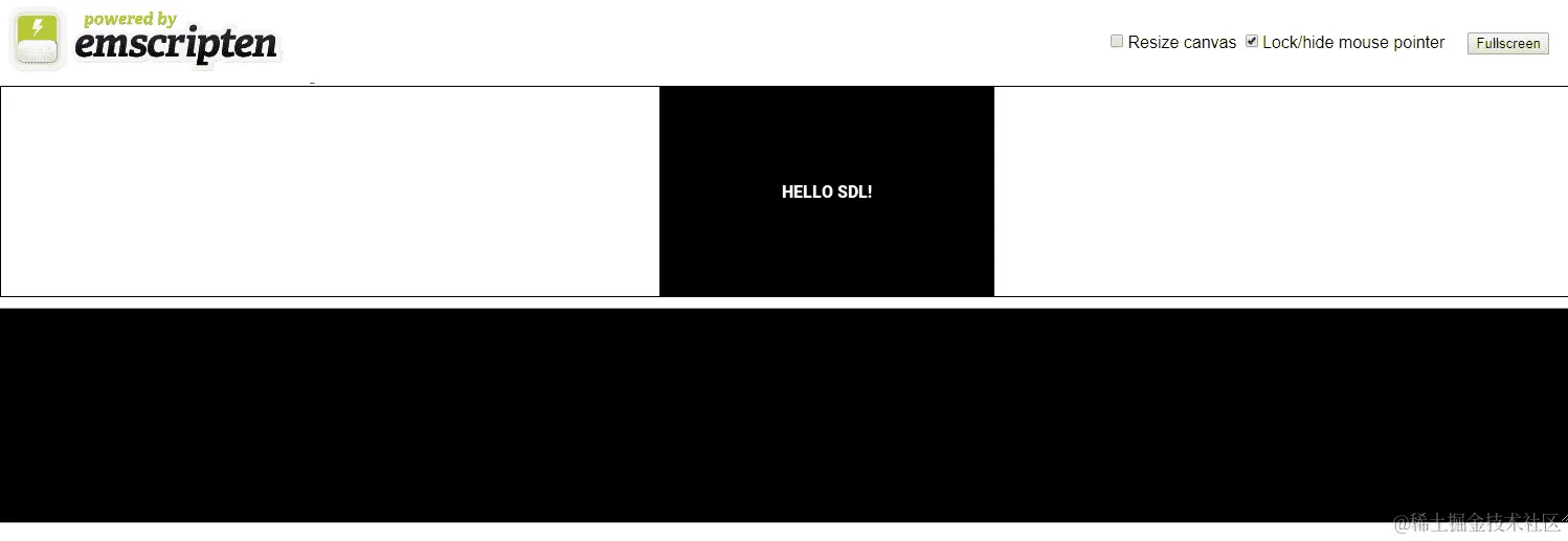 我们已经添加了--preload-file字体标志,以便我们可以创建包含在hello_sdl.data文件中的虚拟文件系统。这个文件保存了我们的 TrueType 字体。应用程序使用了核心 SDL 库和额外的 SDL TrueType 字体模块,因此我们包含了以下标志-s USE_SDL=2 -s USE_SDL_TTF=2,以允许调用SDL和SDL_ttf。如果您的编译顺利进行,当您在浏览器中打开新的hello_sdl.html文件时,它将会是这个样子: