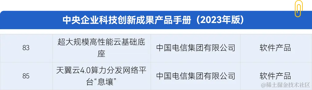 为加快中央企业科技创新成果应用推广,加速科技成果向现实生产力转化,培育发展新质生产力的新动能,国务院国资委组织开展科技创新成果征集遴选工作,编制形成《中央企业科技创新成果产品手册(2023年版)》。中国电信天翼云超大规模高性能云基础底座与算力分发网络平台“息壤”成功入选,彰显了科技创新硬实力。