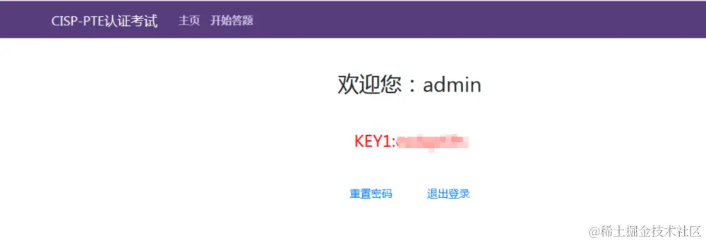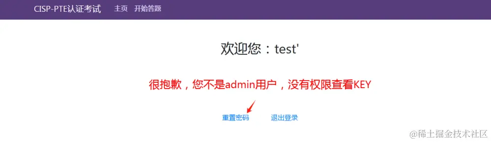 那么二次注入怎么利用,这里可以看到需要admin用户登录才能够得到key,那么我们能够用构造一条语重置admin密码就可以了