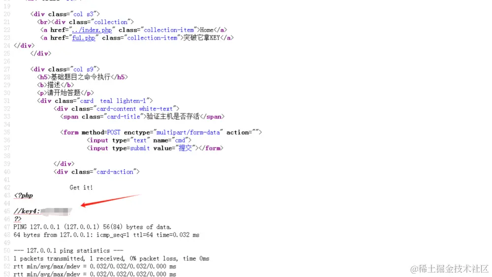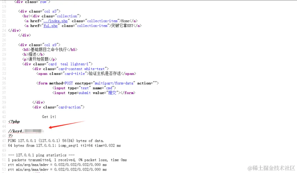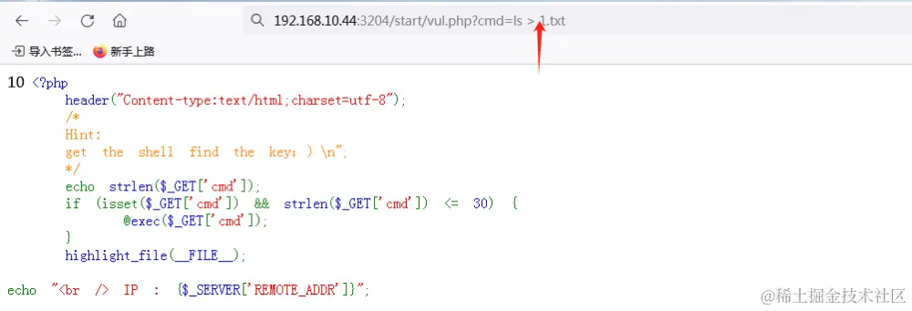 这里有两种思路,第一种是根据题目意思用命令执行写webshell的方式去进行getshell,第二种方式则是使用linux的命令进行绕过。这里采用第二种方式使用c''at的方式进行绕过。