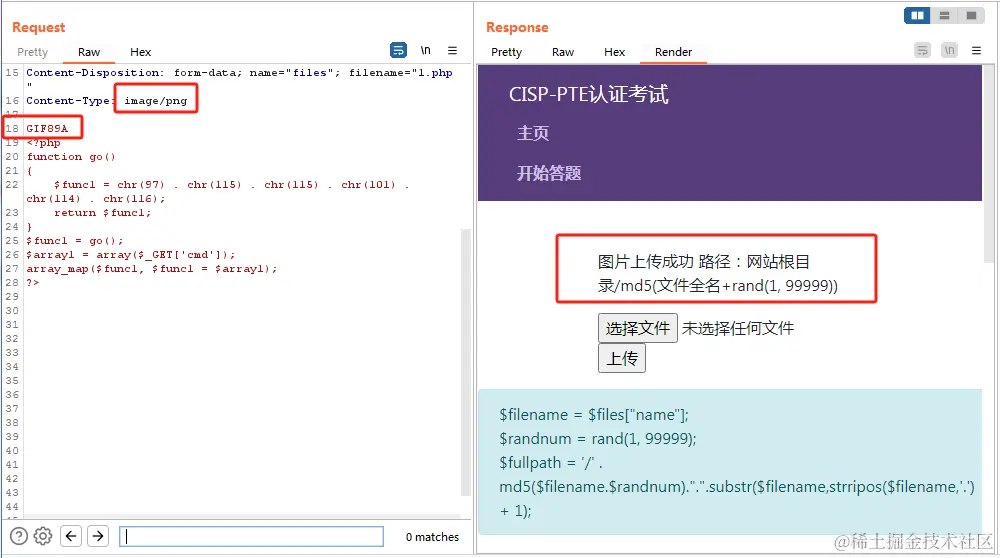 然后设置上传的文件名1.php为前缀,加上随机数的1~99999,最后经过md5加密即可。