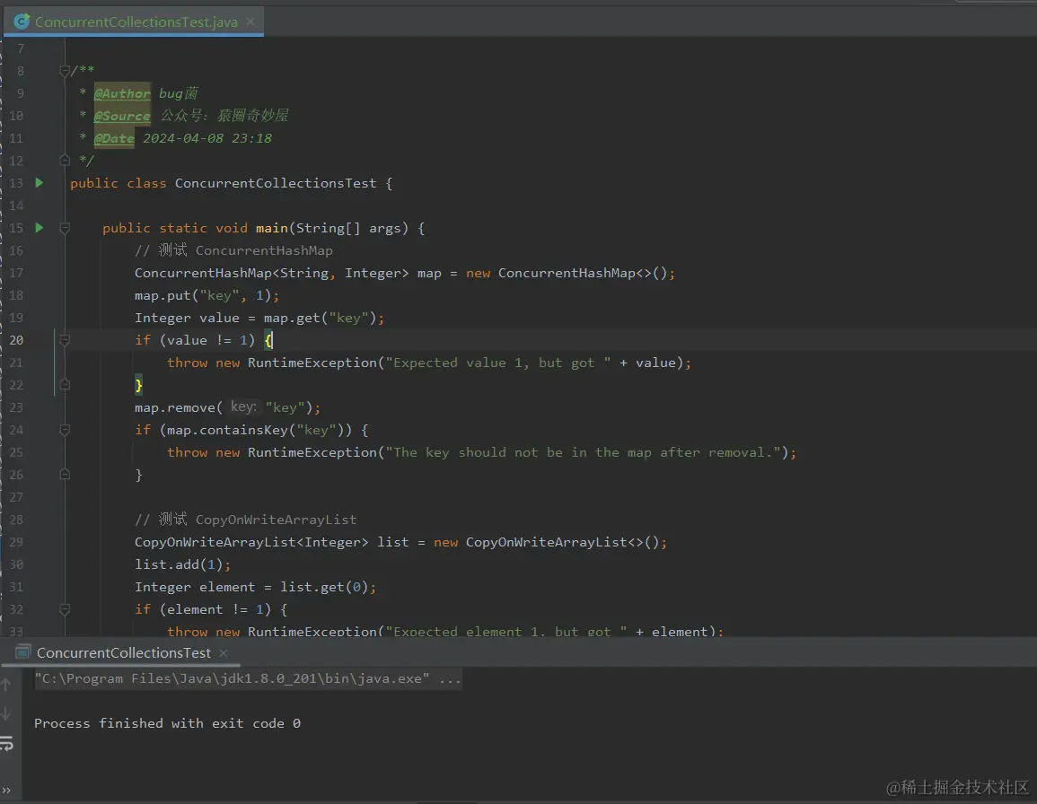 上述测试案例,我演示了如何使用 ConcurrentHashMap、CopyOnWriteArrayList 和 BlockingQueue 这三个并发集合。这些集合类型是 Java 并发 API 的一部分,它们提供了在多线程环境中安全操作数据结构的能力。下面是对代码中每个部分的解析: