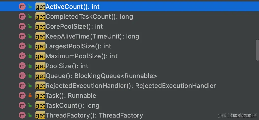 前文说明了如何动态的修改线程池参数,但是什么时候修改又是个问题。也就是说怎么判定需要对线程池进行优化,为了对线程资源的有效管理,对线程池配置监控和告警是十分有必要的。获取线程池运行状态可以通过JDK原生线程池ThreadPoolExecutor提供的几个public的getter方法。