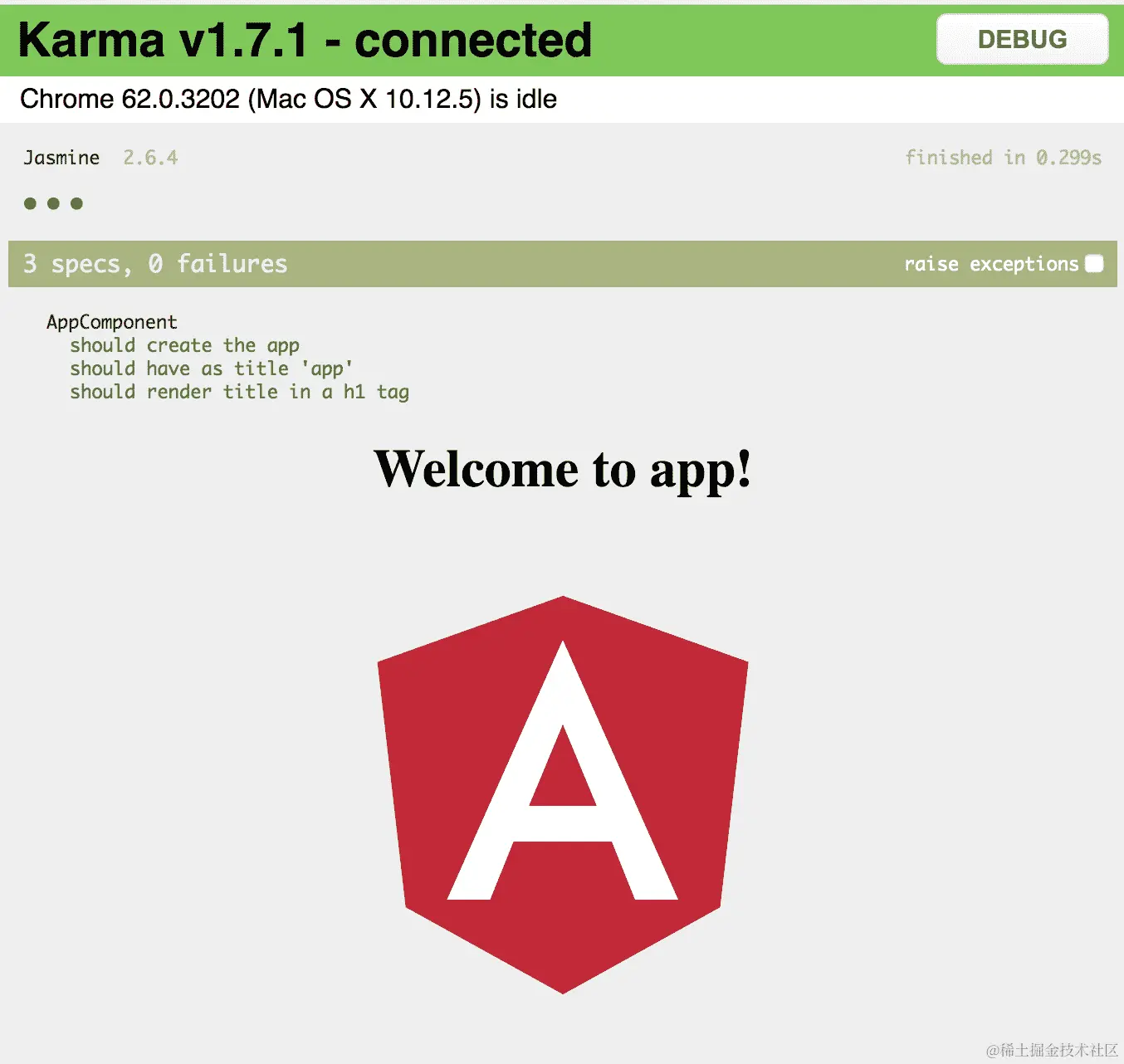Angular CLI 已经设置好了测试,所以我们需要做的唯一的事情就是跟随它的步伐并添加更多的测试,但让我们首先检查一下我们已经得到了什么,并学习一些很棒的命令,以使测试工作更容易。