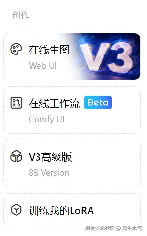 从创作功能上,liblibAi提供了三种主要的创作功能:在线生图,在线工作流以及lora训练。其中在线生图个人感觉比较普适,即便是小白也能轻松上手。而另外两个功能则更加专业(对SD/MJ有一些使用经验)一些,可能有专业诉求才会真正用到。