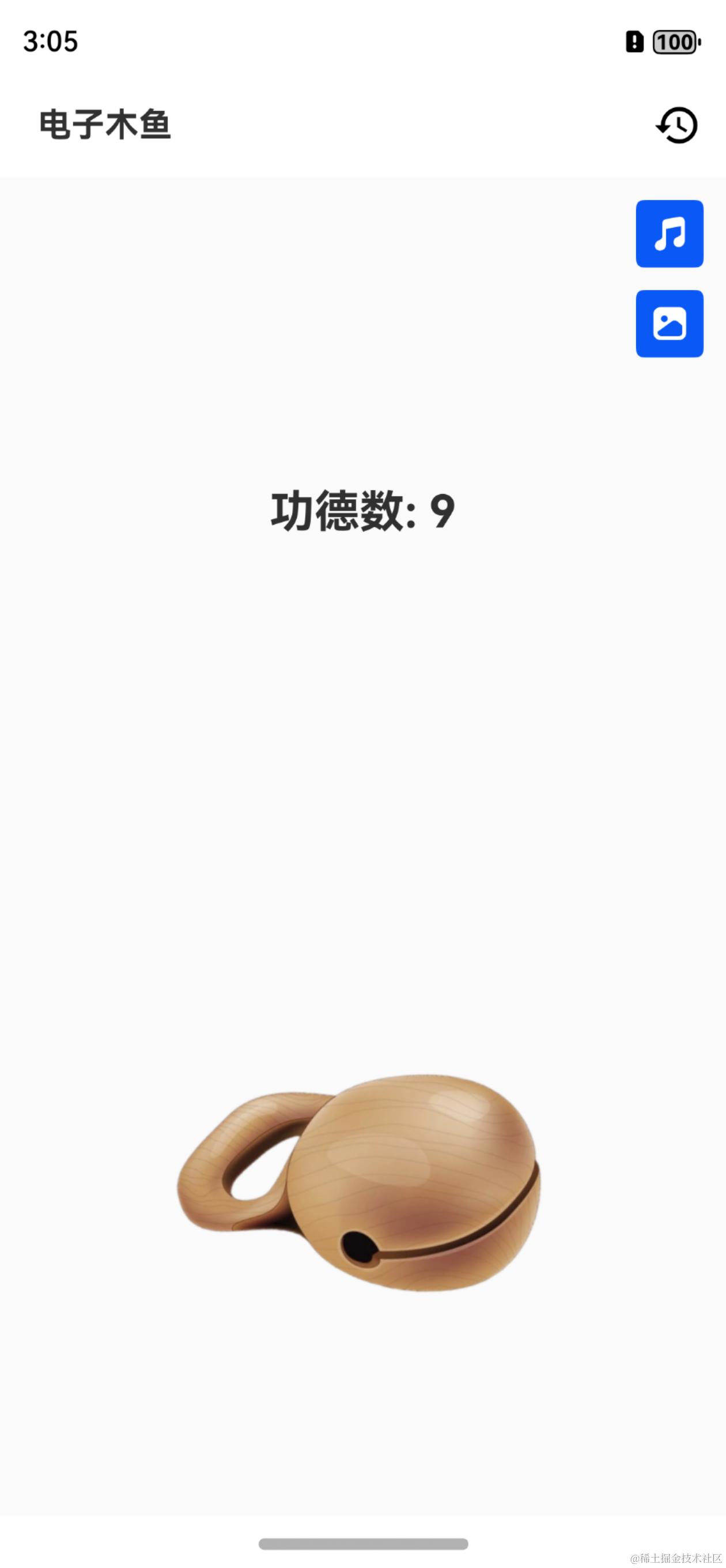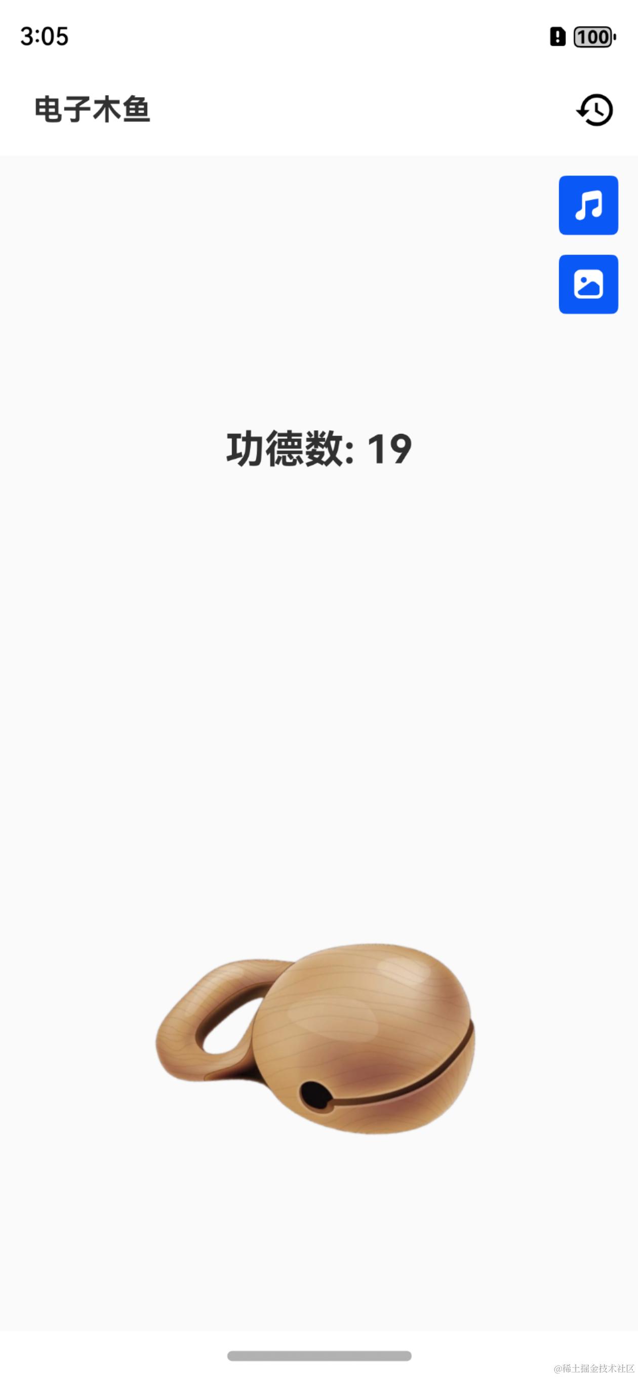 到这里,电子木鱼的基本功能完成了,提交一个小里程碑:v14-电子木鱼-基本功能。下一篇将带来电子木鱼的丰富功能,支持多个音频和木鱼类型的切换。