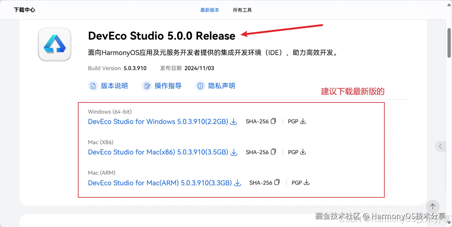 开发工具: DevEco Studio,这是官方推荐的集成开发环境(IDE)。官网地址