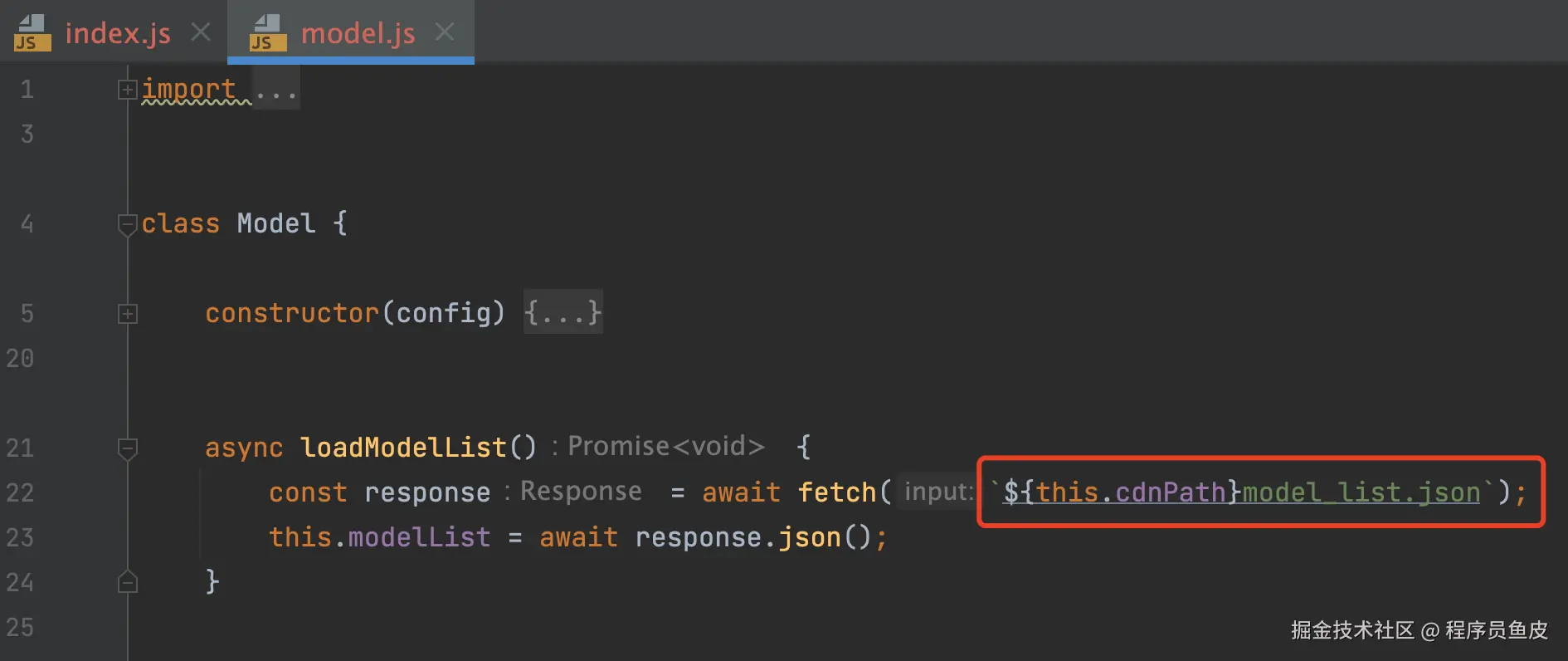 再点进去,就进入了模型定义文件,默认情况下,是通过网络请求从远程服务器上加载的模型列表配置。