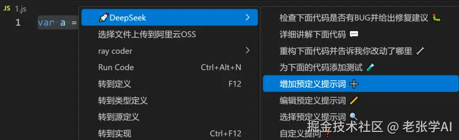 - 右键选择 DeepSeek 相关命令: