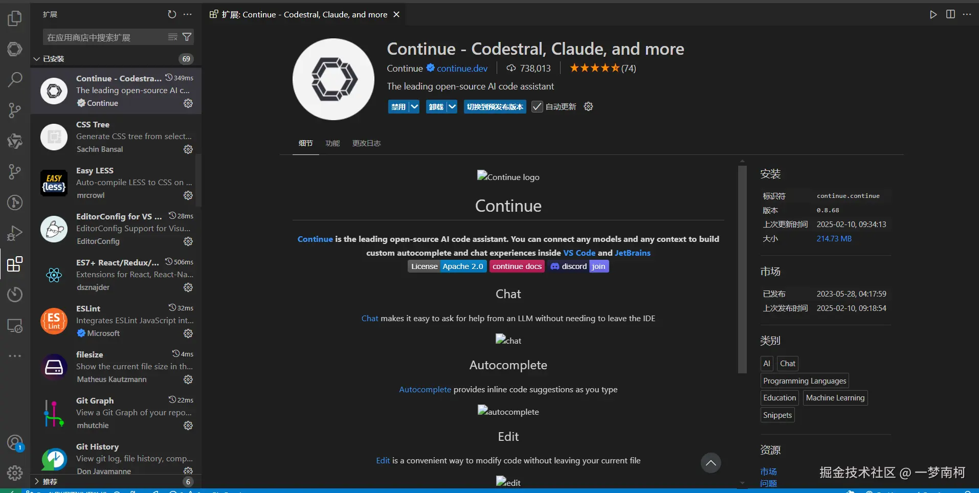 • VS Code 插件Continue - Codestral, Claude, and more