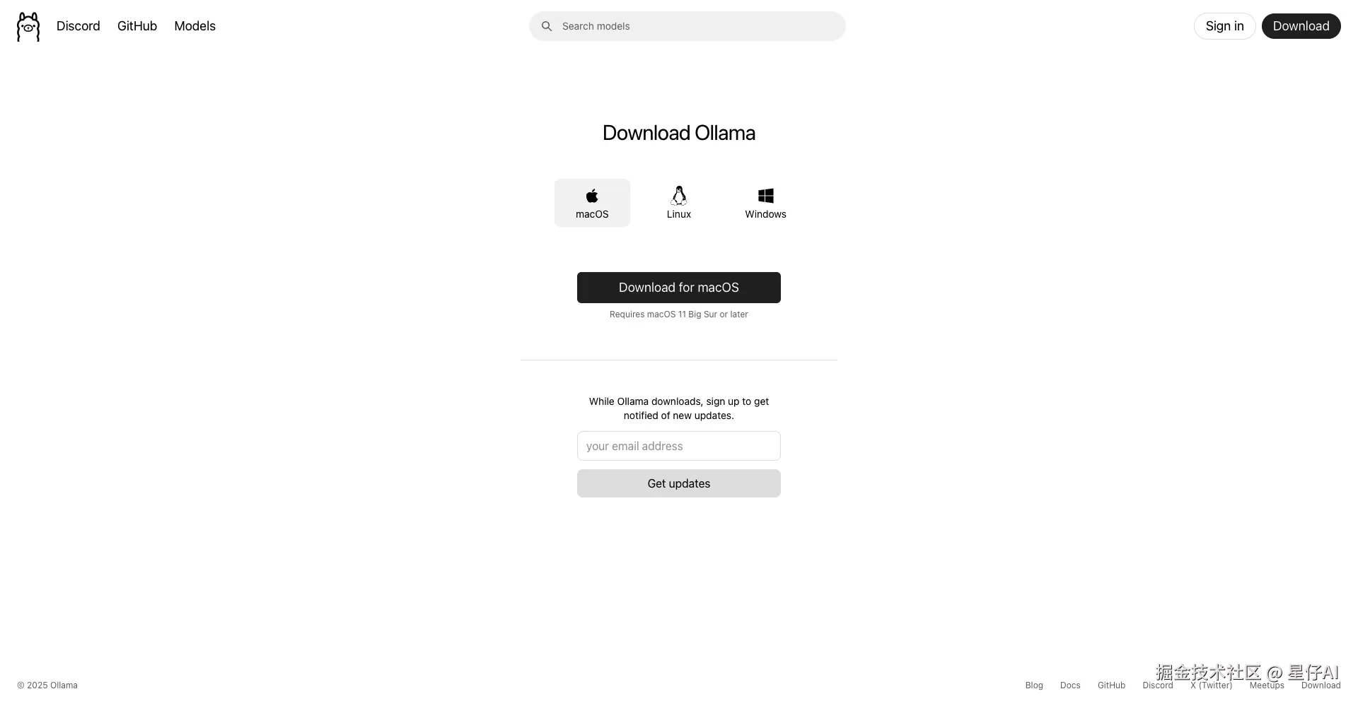 访问Ollama官网下载对应系统安装包: