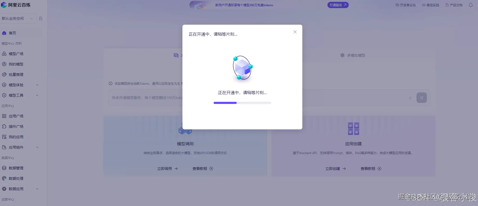 开通模型100万免费tokens服务
