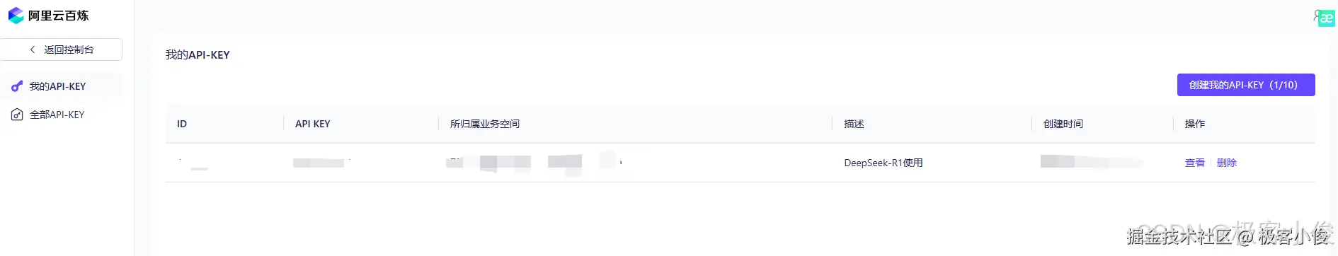 API Key是用于访问阿里云百炼平台上的DeepSeek-R1模型等服务的身份验证凭证,它允许我们的应用程序或客户端安全地与平台通信并执行请求的操作!